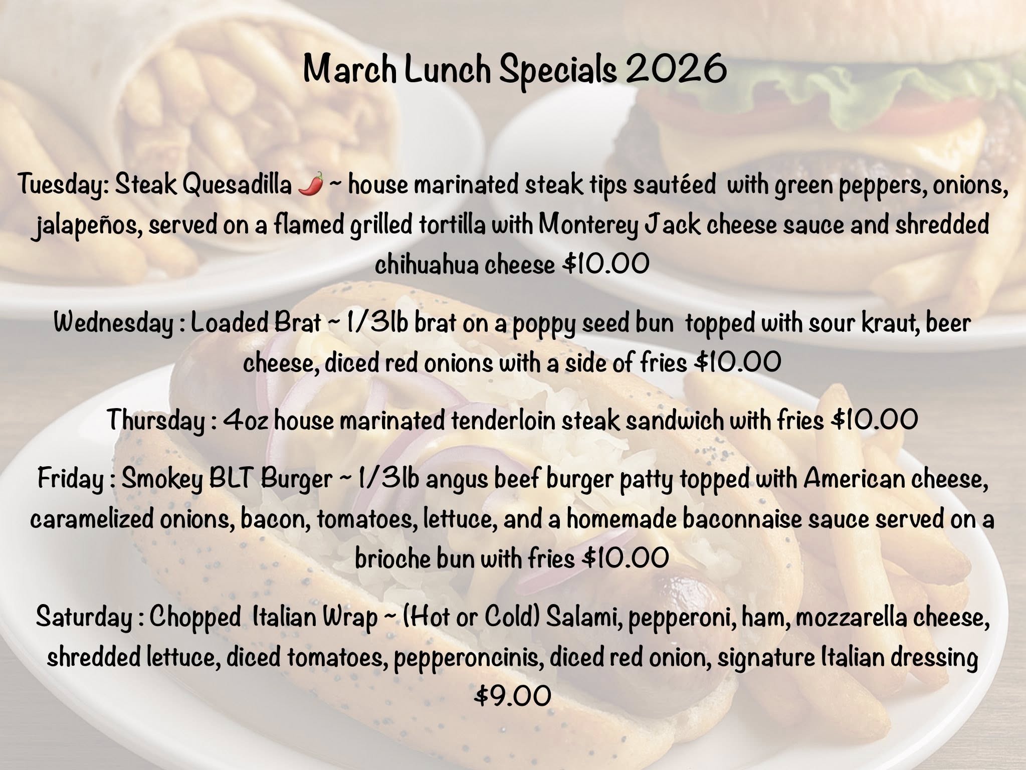 MenuMarch Lunch Menu